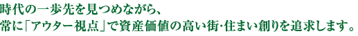 入居者にとっては安全性と利便性と快適性を備え、投資家にとっては、資産性と収益性を備えた商品を供給することが、当社がおこなう開発型の収益マンション事業です。